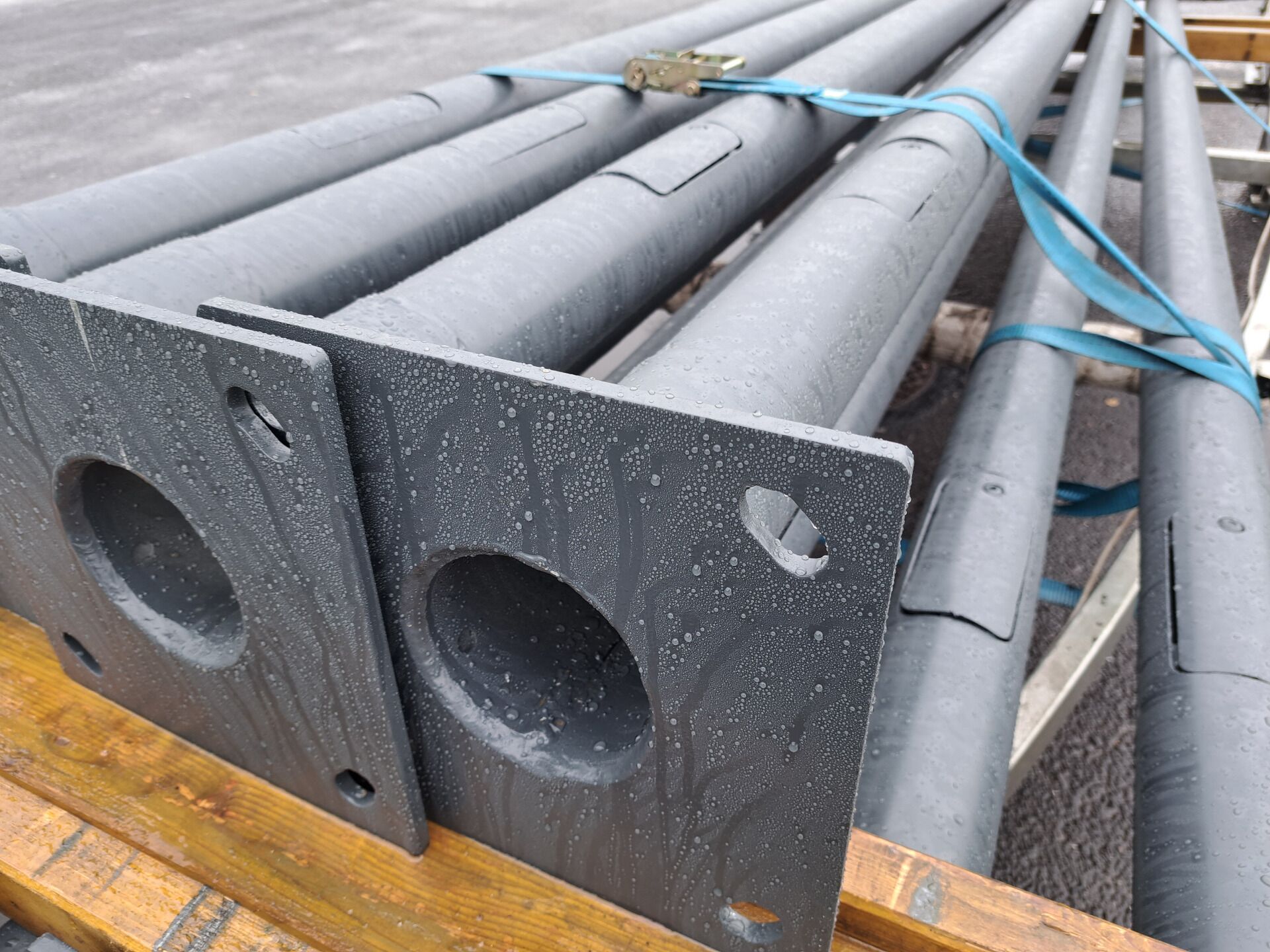 Porfestett acél lámpaoszlopaink antracit szürke színben. Azonnal készletről tudjuk szállítani. Egyéb színkód alapján is tudunk lámpaoszlopokat porfesteni egyedi igény szerint.