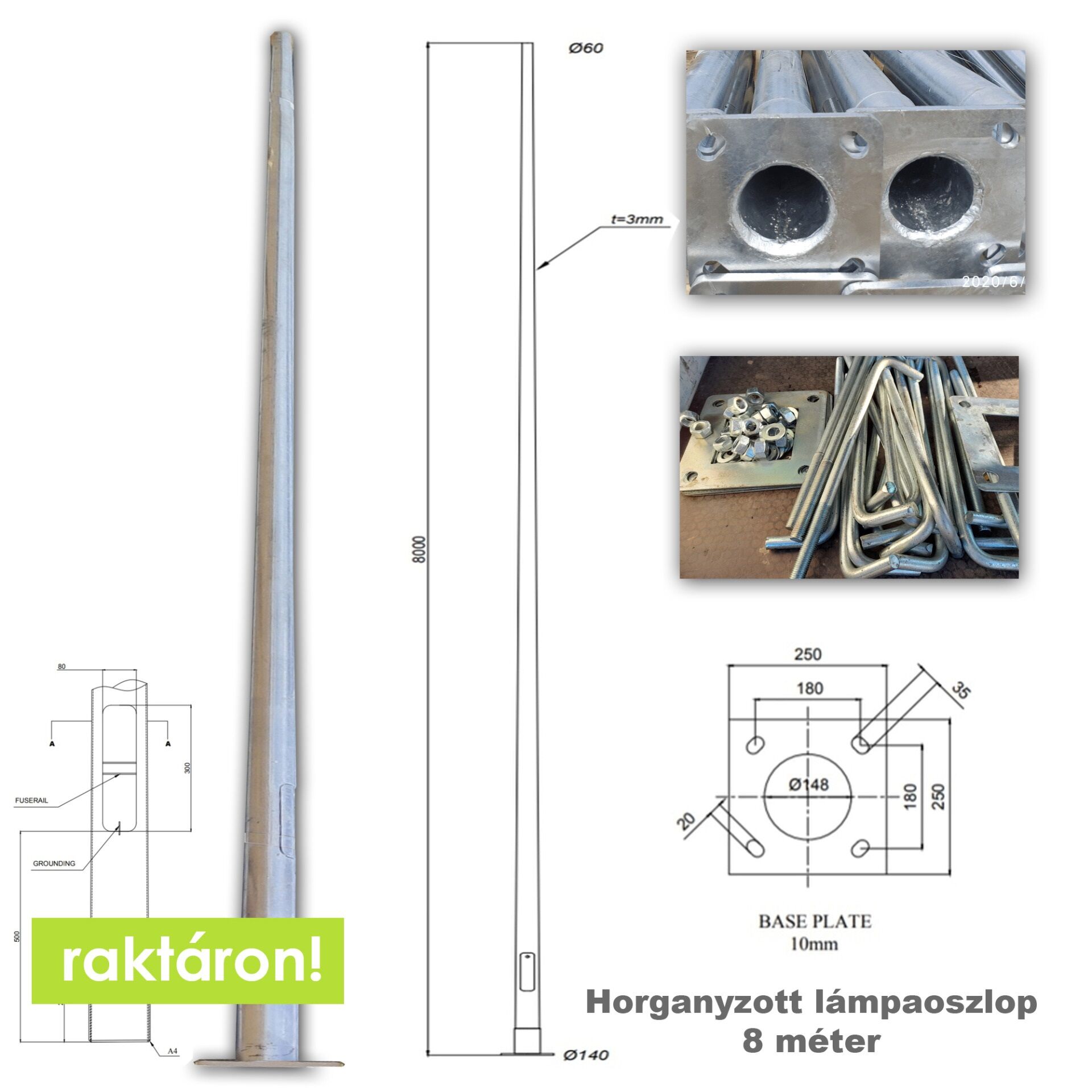 Mindig készleten lévő termék! 4-6-8-10 méteres acél lámpaoszlopaink folyamatosan készleten állnak nagy mennyiségben.